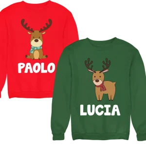 Coppia di Felpe Natale Girocollo PERSONALIZZABILI CON NOME Baby Renne divertenti idea regalo natale Unisex