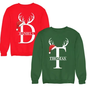 Coppia Felpe Girocollo Natale Natalizie PERSONALIZZABILI CON NOME lui e lei PERSONALIZZA INIZIALE E NOME Unisex