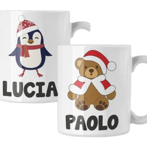 Coppia di tazze Natale Natalizia PERSONALIZZABILE con nome Pinguino Orsetto Christmas Mug 11 Oz Idea Regalo