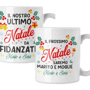 Coppia di tazze Natale Natalizia PERSONALIZZABILE con nome Il nostro ultimo Natale da Fidanzati Christmas Mug 11 Oz Idea Regalo