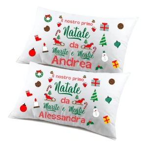 Coppia di federe PERSONALIZZABILI matrimoniali natalizie divertenti Il nostro primo Natale da marito e moglie Personalizza con nome