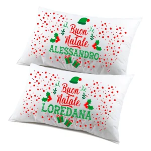 Coppia di federe PERSONALIZZABILI matrimoniali natalizie divertenti Merry Christmas Buon Natale Personalizza con nome