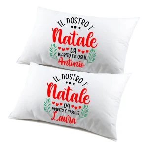 Regalo Natale federe Natalizie Coppia di federe Personalizzabili matrimoniali Divertenti primo Natale da marito e moglie Personalizza con Nome