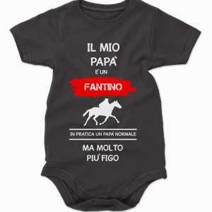 Body da neonato Il mio papà è un fantino in pratica un papà normale ma molto più figo – body simpatici e divertenti – sport – idea regalo