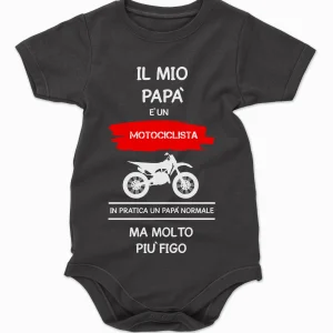 Body da neonato Il mio papà è un motociclista in pratica un papà normale ma molto più figo – body simpatici e divertenti – sport – idea regalo
