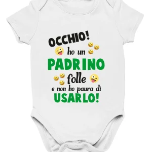 Body da neonato Occhio! ho un padrino folle e non ho paura di usarla – body simpatico e divertente – idea regalo