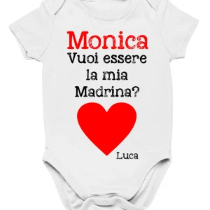 Body neonato divertente PERSONALIZZABILE madrina Vuoi essere la mia madrina? Bianco dalla 0-6 alla 18-24 mesi
