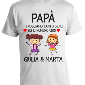 Maglietta Papà PERSONALIZZABILE Femminucce Festa del Papà Ti voglio tanto bene! Sei il numero uno! Regalo Papà