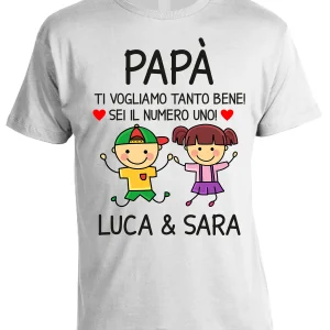 Maglietta Papà PERSONALIZZABILE Maschietto e Femminuccia Festa del Papà Ti voglio tanto bene! Sei il numero uno! Regalo Papà