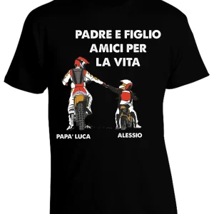 Maglietta Papà PERSONALIZZABILE Festa del Papà Motociclista Motocross Padre e Figlio amici per la vita Regalo Papà