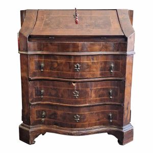 Cassettone a ribalta lastronato in noce e radica di noce, Piemonte, XVIII secolo