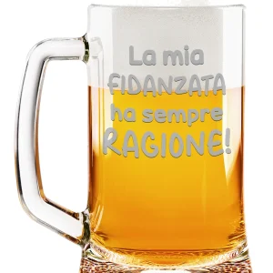 Boccale da Birra SanValentino La mia Fidanzata ha Sempre Ragione Bicchiere 50 cl con incisione Regalo Fidanzati Innamorati Divertenti