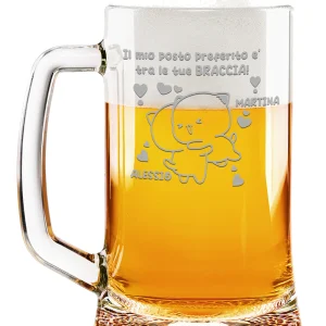 Boccale da Birra SanValentino PERSONALIZZABILE CON NOME Il tuo posto preferito è tra le mie braccia Bicchiere 50 cl con incisione Regalo Fidanzati Innamorati Divertenti