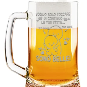 Boccale da Birra SanValentino PERSONALIZZABILE CON NOME Voglio solo toccare di continuo le tue tette, sono belle Bicchiere 50 cl con incisione Regalo Fidanzati Innamorati Divertenti