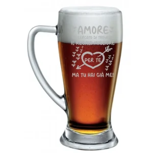 Boccale da Birra SanValentino Alfabeto Amore Bicchiere 38 cl con incisione Regalo Fidanzati Innamorati Divertenti