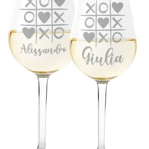 Coppia Calici Personalizzati Set da 2 calici vino personalizzati con nome Innamorati disegno – bicchiere in vetro 500 ml