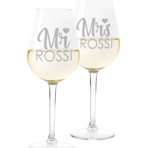 Coppia Calici Personalizzati Set da 2 calici vino personalizzati con cognome Mr Mrs – bicchiere in vetro 500 ml