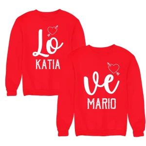 Coppia Felpe Girocollo SanValentino Personalizzabili con Nome Lui e lei LOVE Idea Regalo Innamorati Unisex