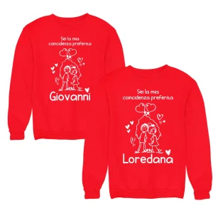 Coppia Felpe Girocollo SanValentino Personalizzabili con Nome Lui e lei Sei la mia coincidenza preferita Idea Regalo Innamorati Unisex