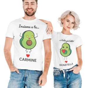 Coppia Magliette T-Shirt Sanvalentino Personalizzabile Avocado Personalizza con Nome Amore Innamorati Fidanzati Regalo Lui e Lei