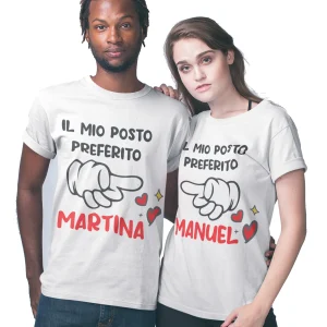 Coppia T-Shirt Magliette SanValentino PERSONALIZZABILI con nome Il mio posto preferito Love idea regalo