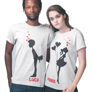 Coppia Magliette T-Shirt Sanvalentino Personalizzabile Love Personalizza con nome Amore Innamorati Fidanzati Regalo Lui e Lei