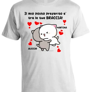 T-Shirt Maglietta SanValentino PERSONALIZZABILE con nome Il mio posto preferito è tra le tue braccia Love Innamorati Idea Regalo