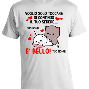 T-Shirt Maglietta SanValentino PERSONALIZZABILE con nome Voglio solo toccare di continuo il tuo sedere è bello Love Innamorati Idea Regalo