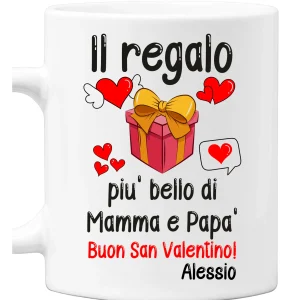 Tazza Sanvalentino PERSONALIZZABILE CON NOME divertente Il regalo più bello di Mamma e Papà Buon SanValentino – love – amore Mug in ceramica 11 Oz