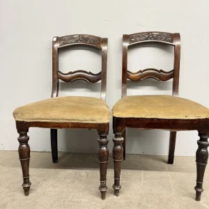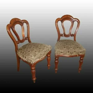 Coppia di sedie L. Filippo 1850, intagliate. Noce massello