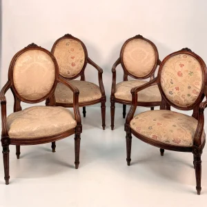 Set di quattro poltrone in noce Piemonte fine XVIII secolo