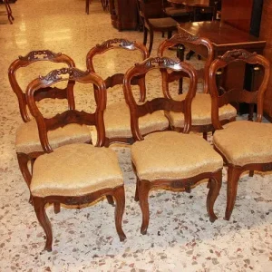 Gruppo di 6 sedie Luigi Filippo in noce Italia 19°secolo