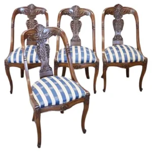 Gruppo di 6 sedie Luigi Filippo Francesi in Legno di Noce Fiammato