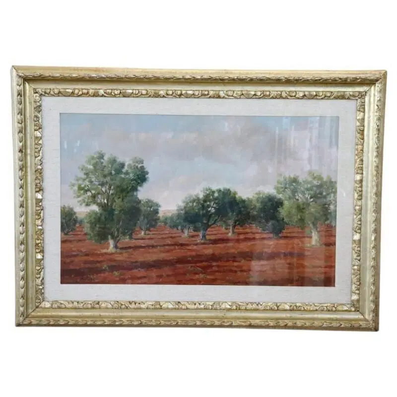 Bellissimo dipinto a olio su tela anni ’70. Uno splendido paesaggio italiano con ulivi, precisamente nella città di Tarquinia, nell’Italia meridionale. Firmato dall’artista Alfieri Manlio (Tarquinia, 23 mag. 1909 – Gaeta 1991).