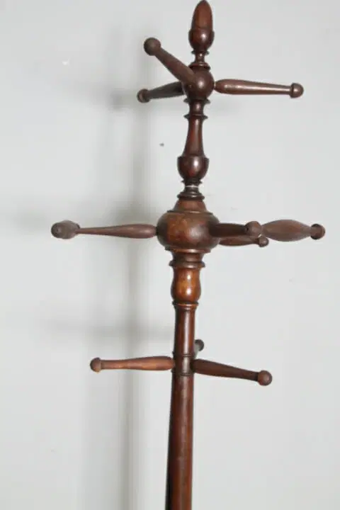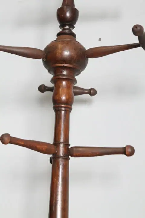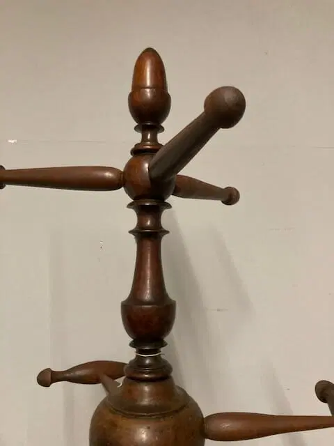 Antico attaccapanni in noce massello tripode , epoca del Luigi Filippo, metà 800 . Oggetto in patina