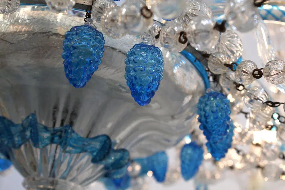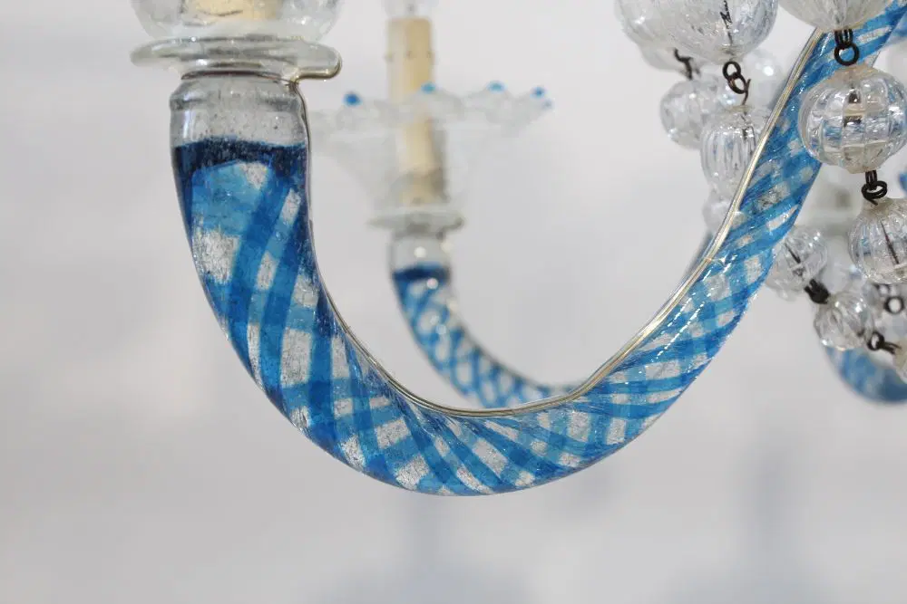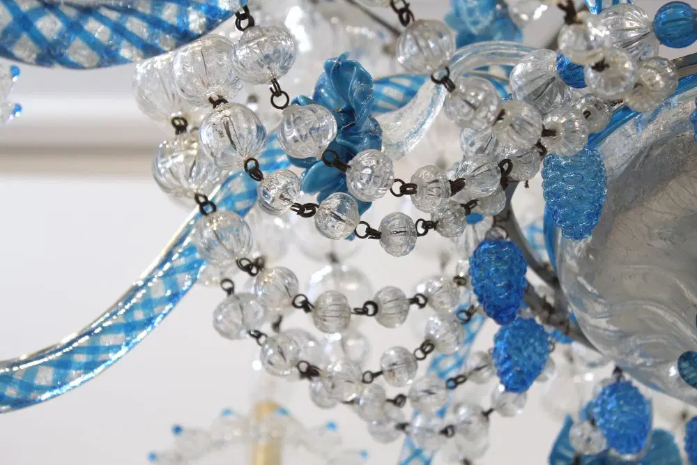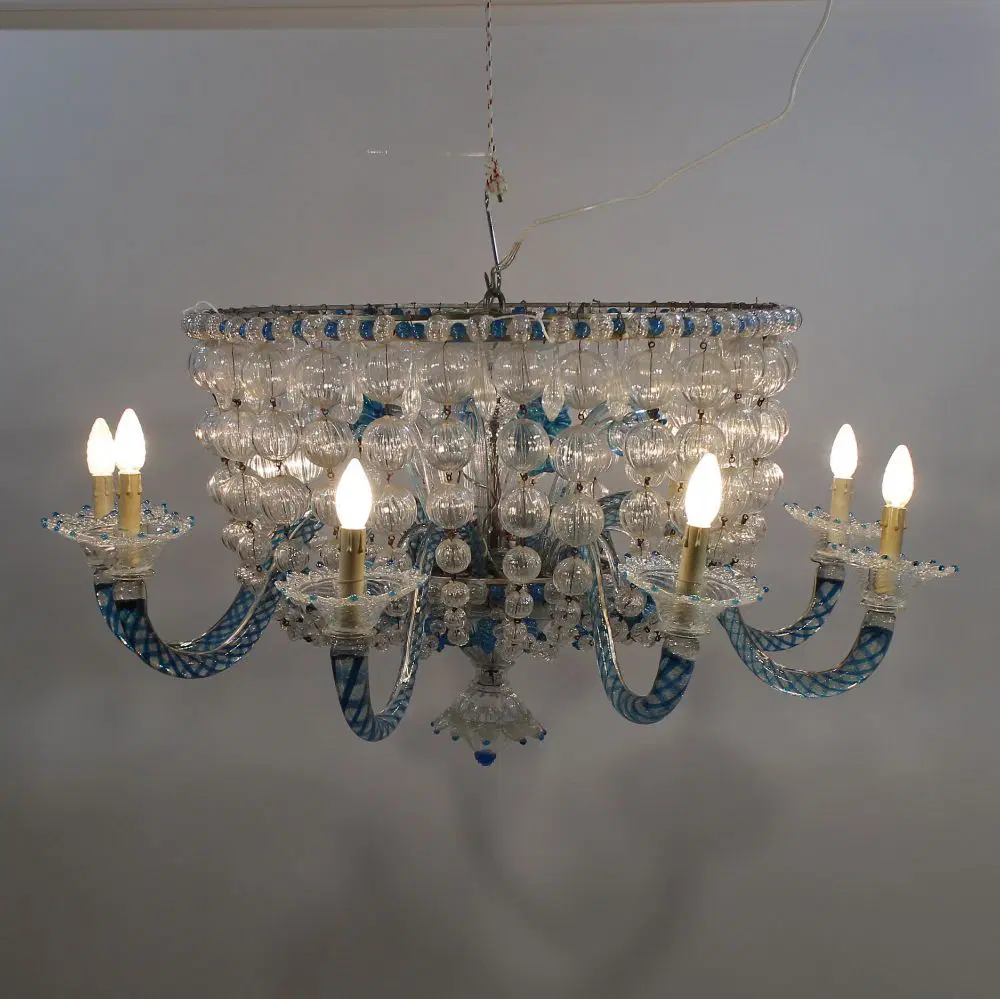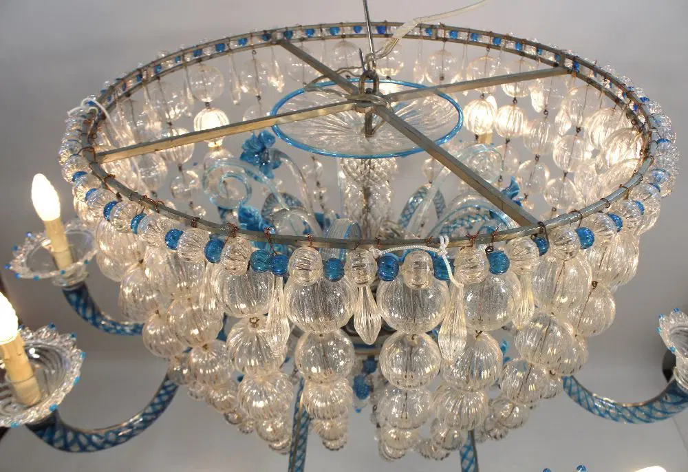 Monumentale e sfarzoso lampadario in vetro soffiato di Murano a 9 braccia databile approssimativamente anni ’30 del XX secolo.