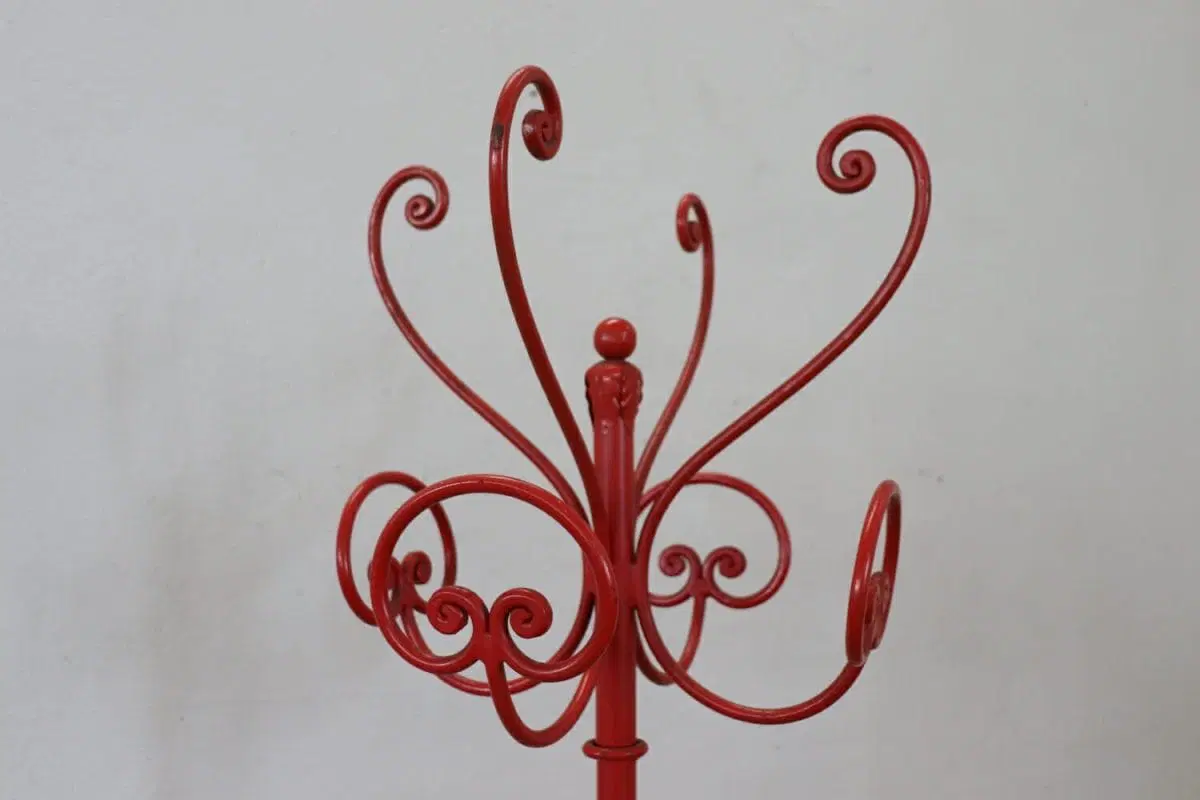 appendiabiti in ferro laccato rosso. Bellissima lavorazione del ferro con volute e riccioli. Buone condizioni generali. Proposta ad un’ottimo prezzo comunque trattabile vi invitiamo ad inviarci le vostre proposte di acquisto le valuteremo con piacere.