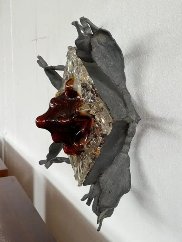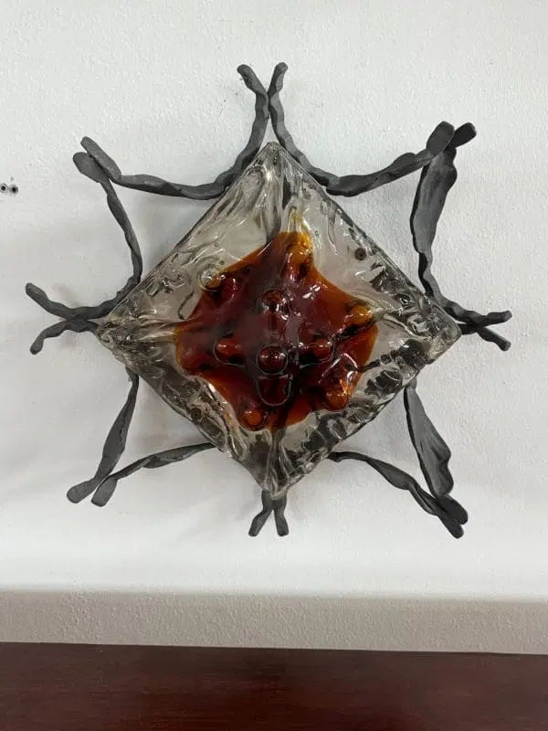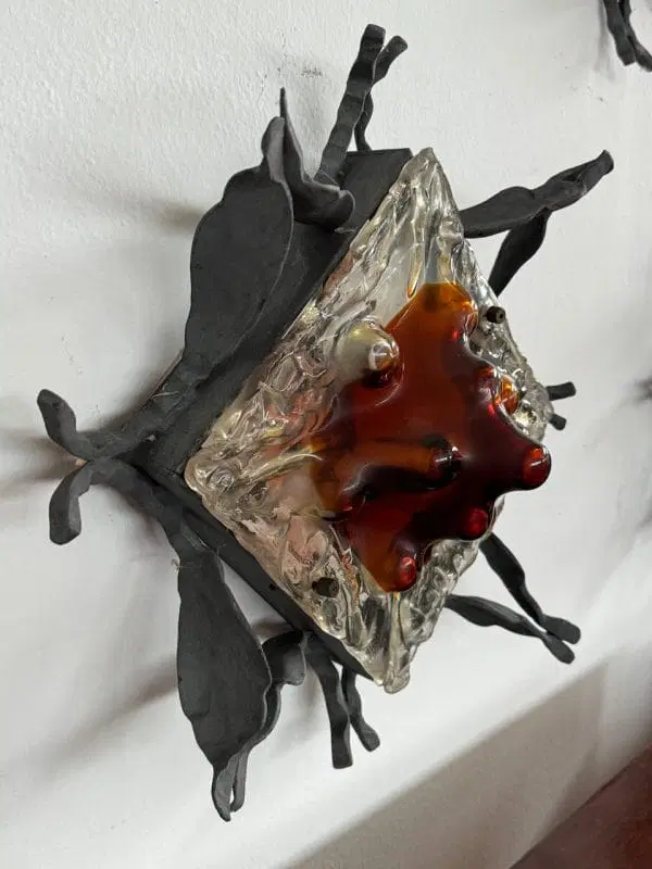 Applique Vintage Anni 70 Base In Ferro E Paralume In Vetro In Stile Mazzega