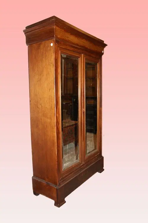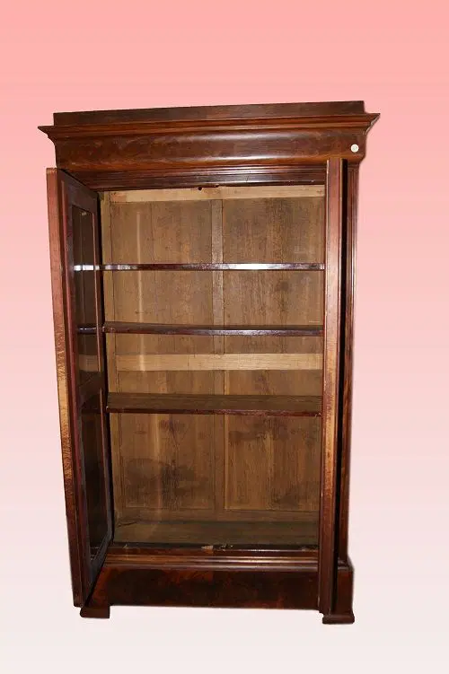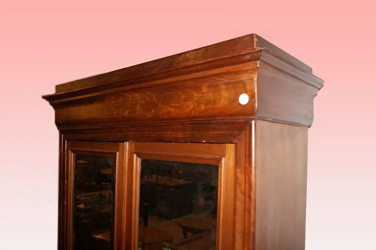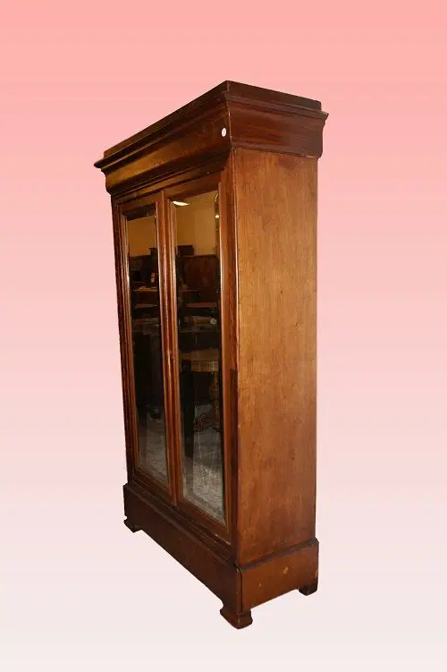Armadio 2 porte francese della seconda metà del 1800, stile Luigi Filippo, in legno di mogano e piuma di mogano. Presenta 2 ante con specchio e internamente ripiani.