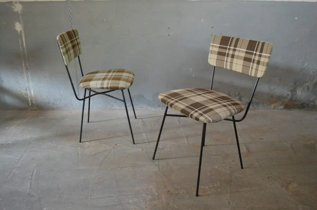 Coppia sedie anni 50 BBPR modello ELETTRA, in metallo e tessuto