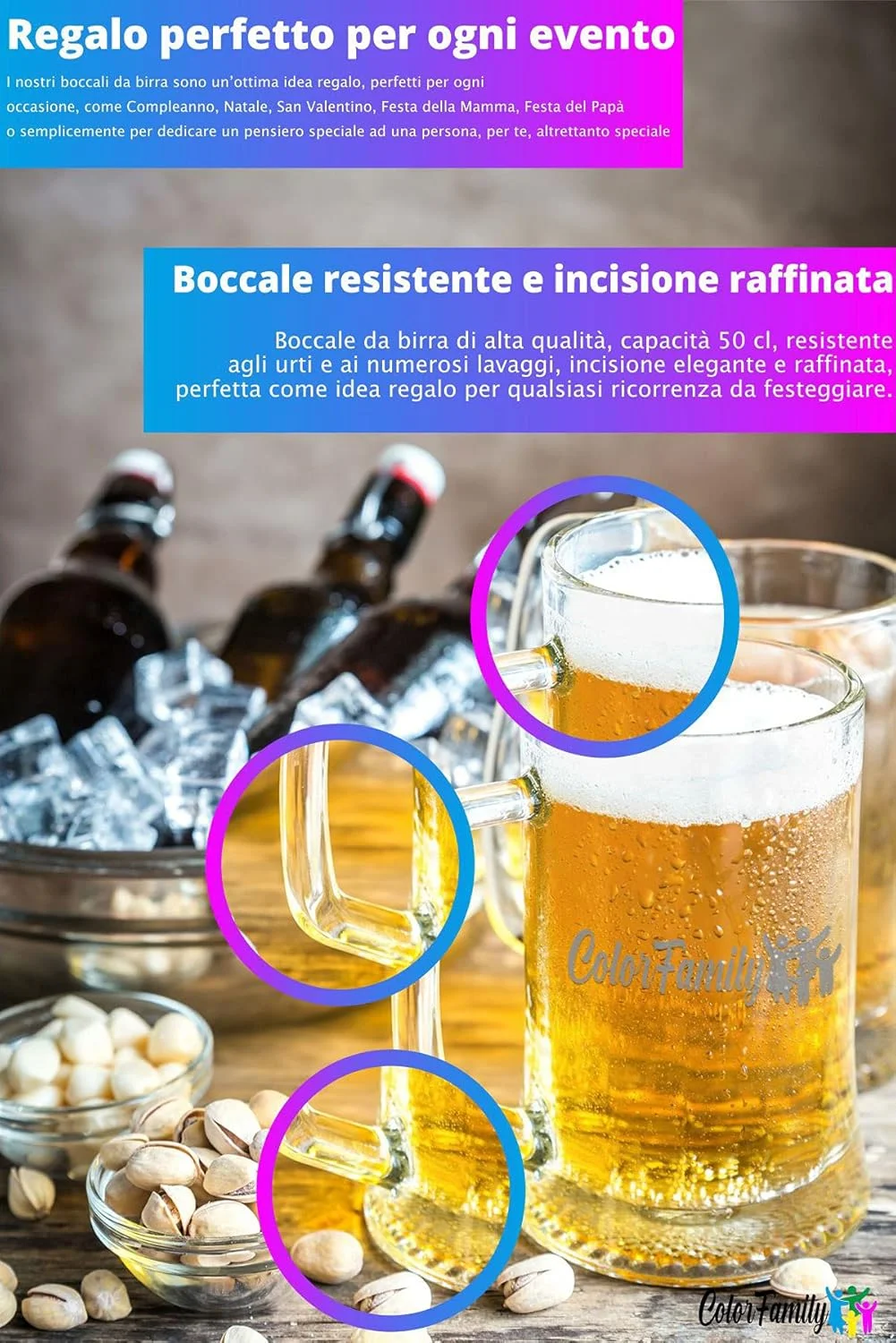 - OCCALE DA BIRRA CON INCISIONE: Simpatica e originale Idea Regalo divertente compleanno papà mamma nonno nonna zio zia madrina. Capienza 50cl, vetro di alta qualità.