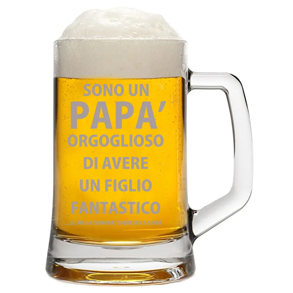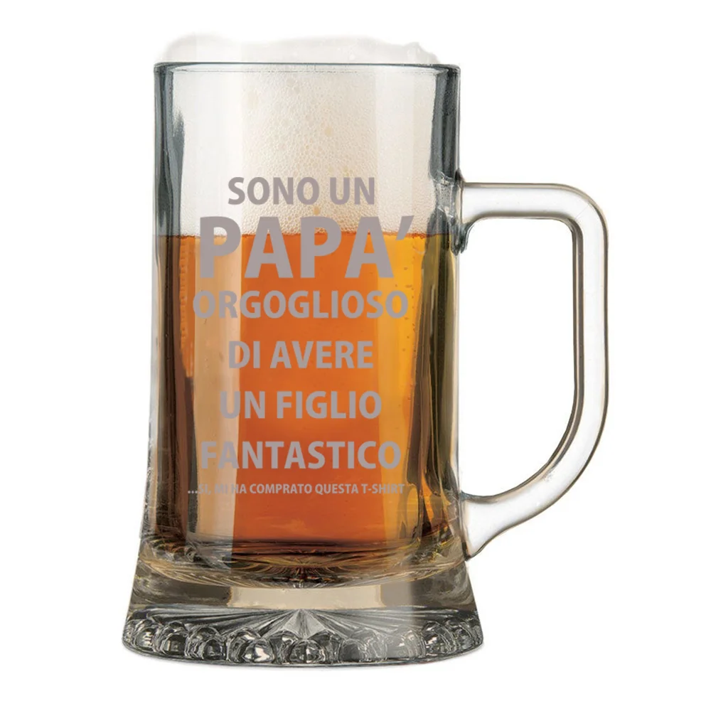 Regala questo boccale con incisione un pensiero simpatico ed originale per rendere speciale la festa del papà, il compleanno o un’altra ricorrenza a te cara. E’ realizzato in vetro di alta qualità con capienza 50 cl.