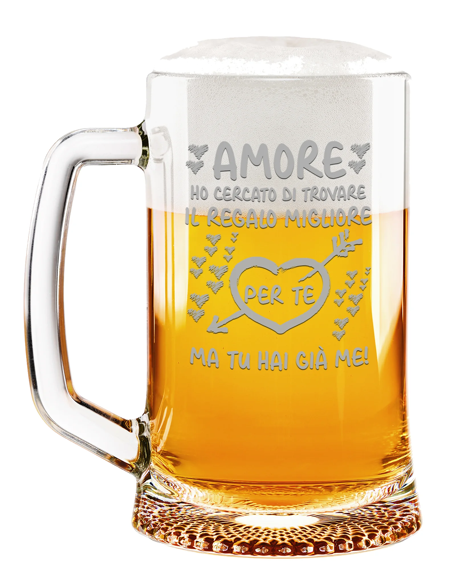 Questo boccale unico ed originale può essere un simpatico regalo utile a qualsiasi ricorrenza come Compleanno, Festa del Papà, Festa della Mamma, Natale. Anniversario, Pasqua, SanValentino o semplicemente per stupire una persona a te cara. Un’idea regalo che renderà felice chiunque grazie alla frase personalizzata di questo bicchiere da birra in vetro.