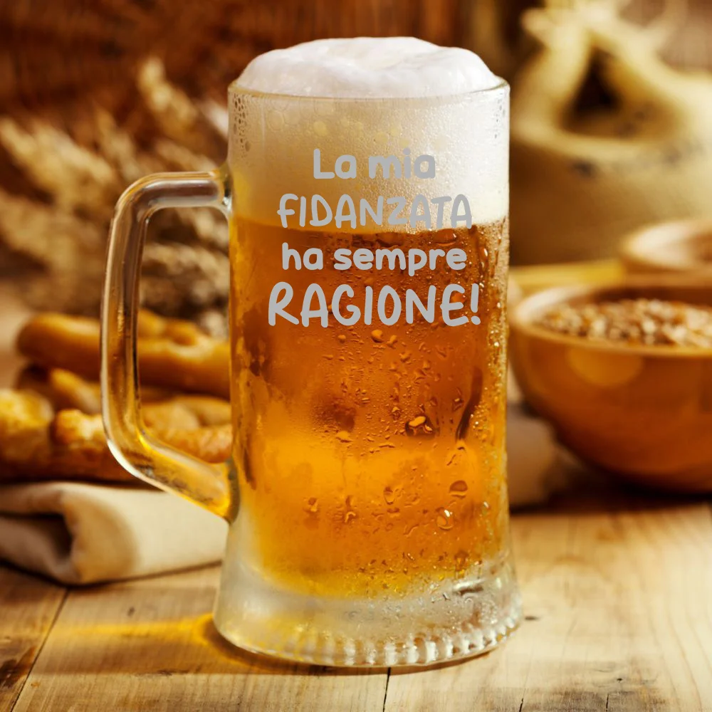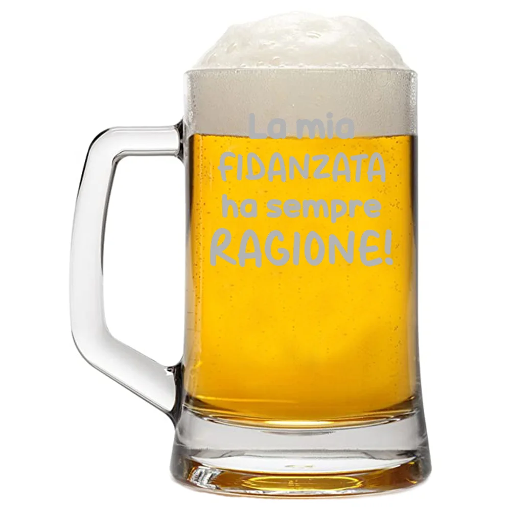 Questo boccale unico ed originale può essere un simpatico regalo utile a qualsiasi ricorrenza come Compleanno, Festa del Papà, Festa della Mamma, Natale. Anniversario, Pasqua, SanValentino o semplicemente per stupire una persona a te cara. Un’idea regalo che renderà felice chiunque grazie alla frase personalizzata di questo bicchiere da birra in vetro.