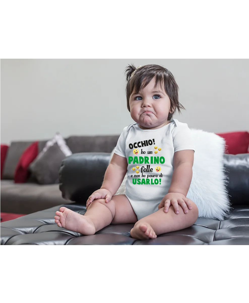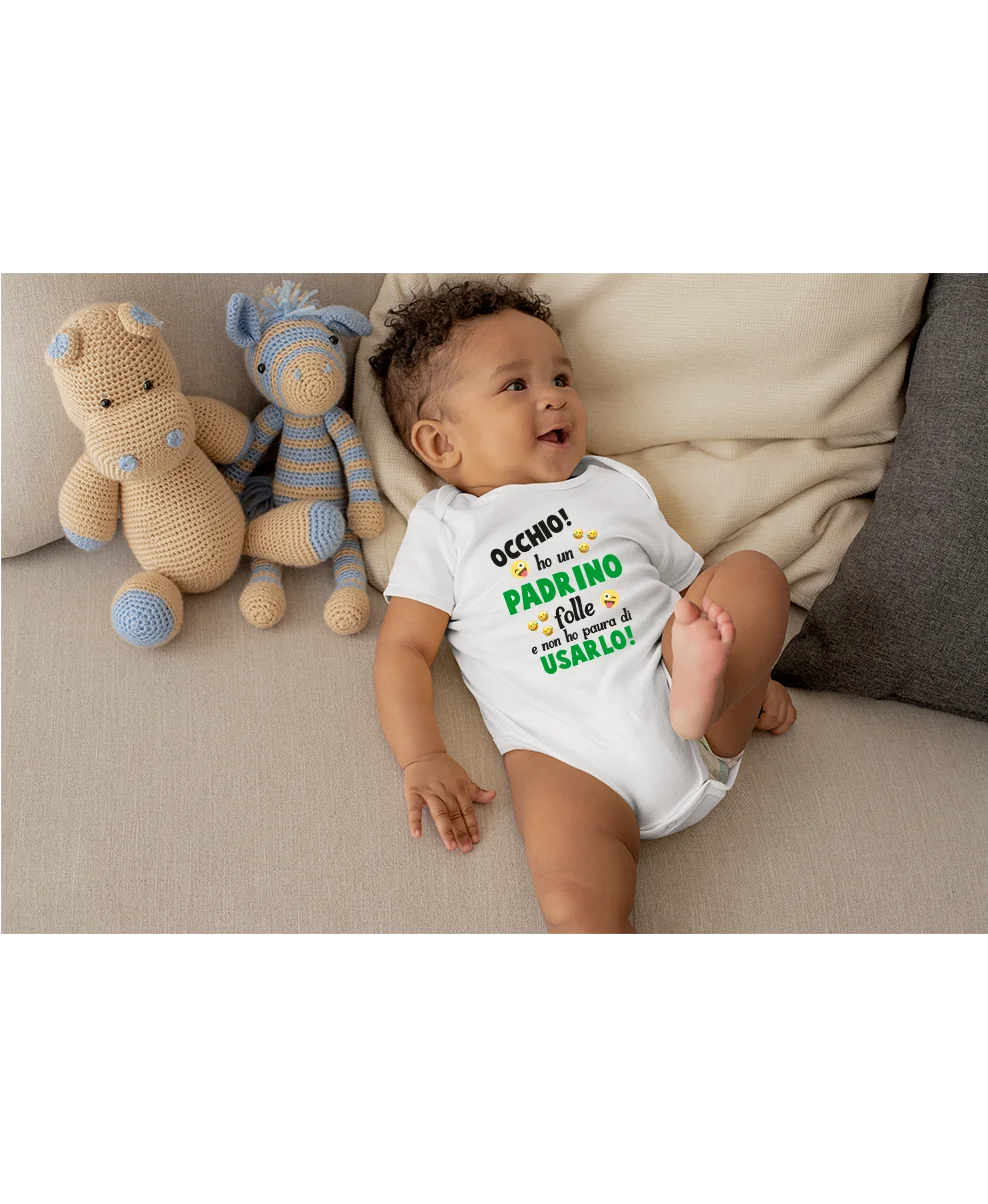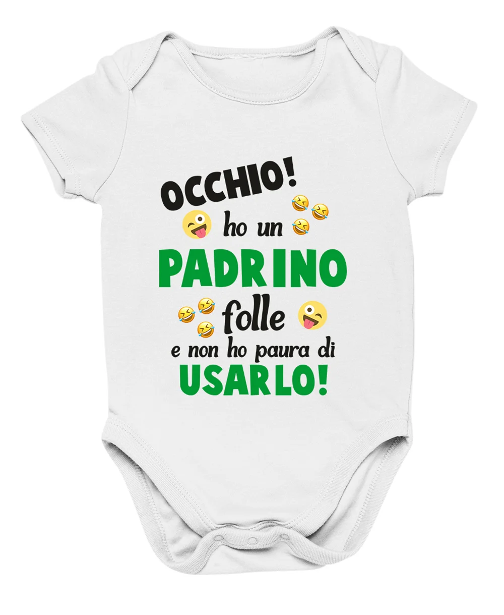 Body da neonato Occhio! ho un padrino folle e non ho paura di usarla – body simpatico e divertente – idea regalo