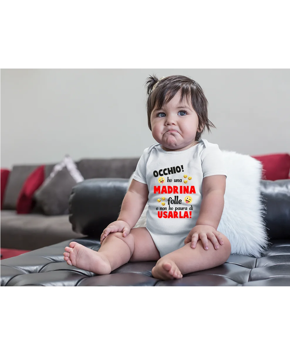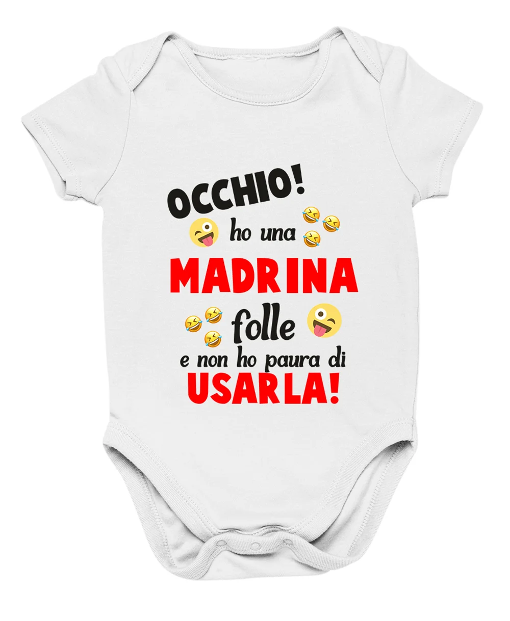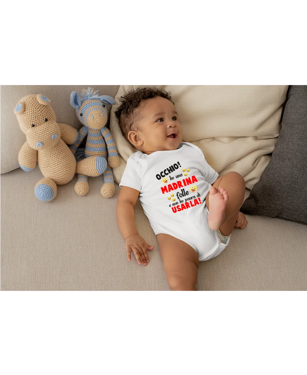 Body da neonato Occhio! ho una madrina folle e non ho paura di usarla – body simpatico e divertente – idea regalo
