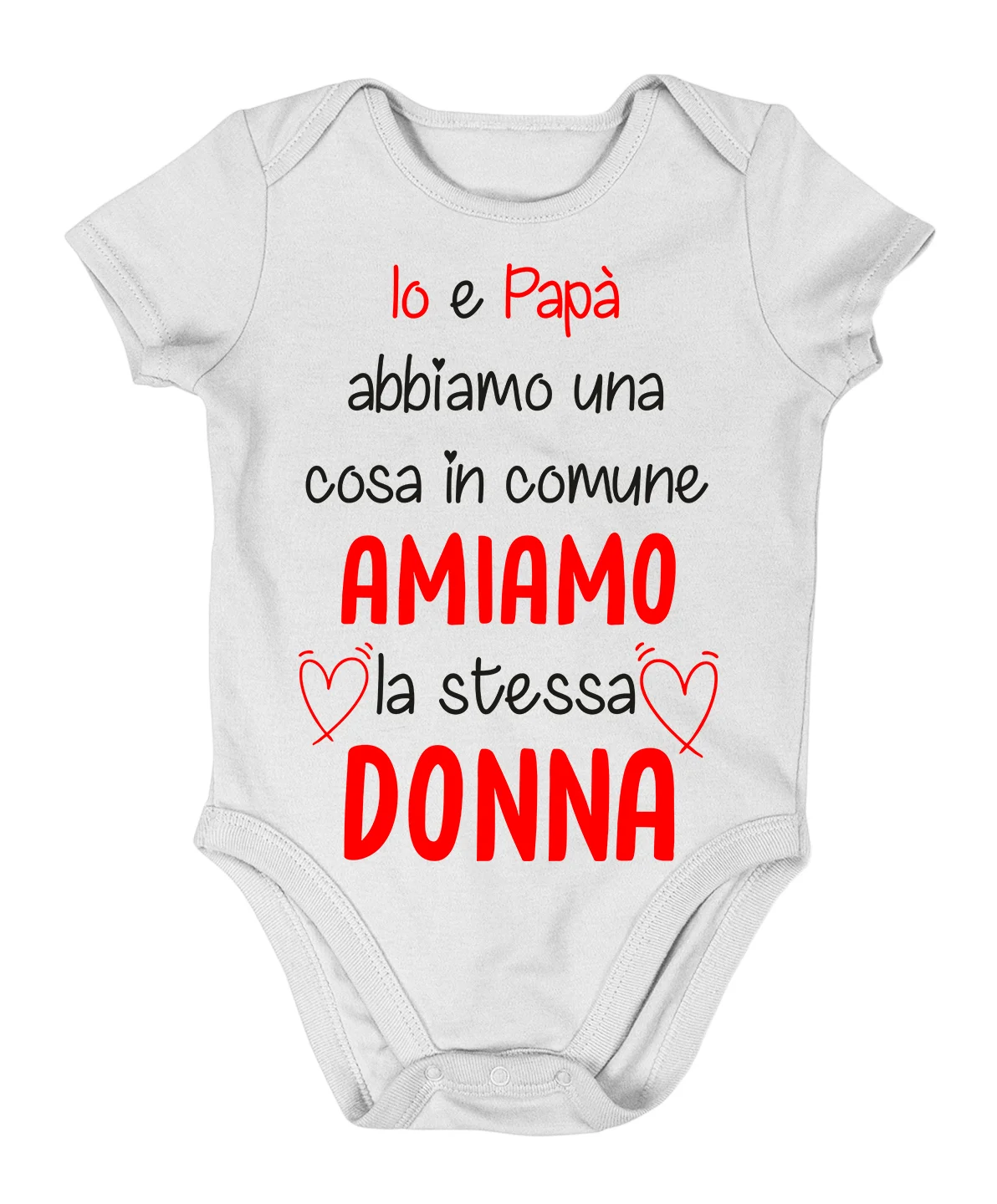 Body neonato divertente Festa della Mamma Io e Papà abbiamo una cosa in comune, amiamo la stessa donna – body mamma – idea regalo