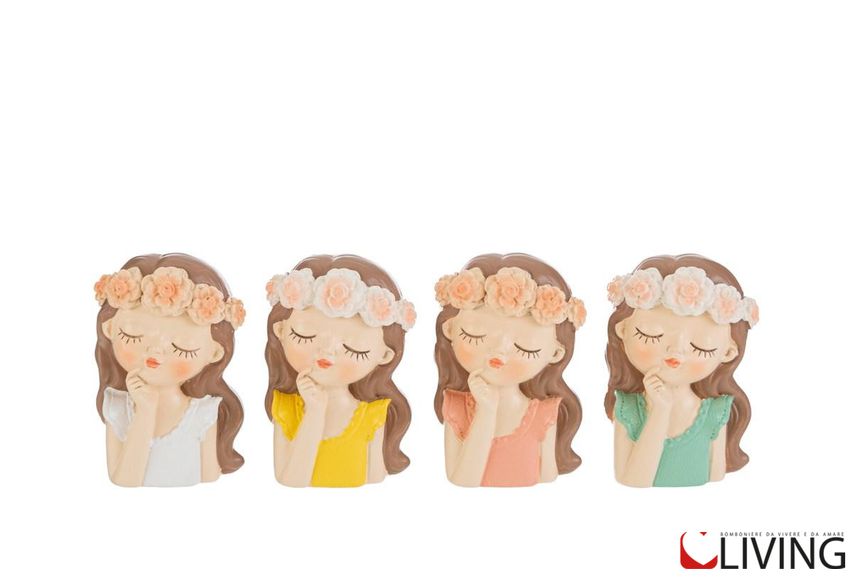 Design: Disponibile in 4 colori assortiti, ognuno con dettagli unici e delicati motivi floreali che decorano le teste delle figure femminili.