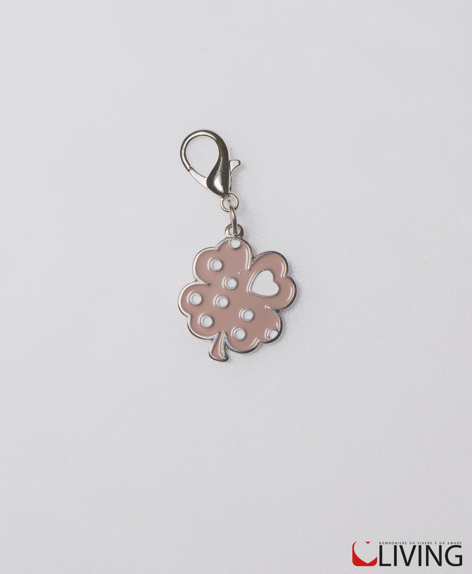 Charm quadrifoglio in metallo smaltato beige. Questo è un prodotto made in Italy di alta qualità che non si ossida.