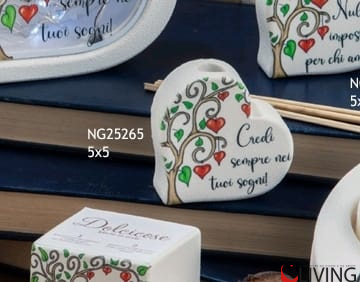 Realizzato in polvere di marmo di Carrara, il cuore è decorato con l’iconico Albero della Vita, simbolo di crescita, forza e connessione con le proprie radici. La scritta motivazionale “Credi sempre nei tuoi sogni” ispira e rende questo oggetto una scelta perfetta come bomboniera o regalo speciale.